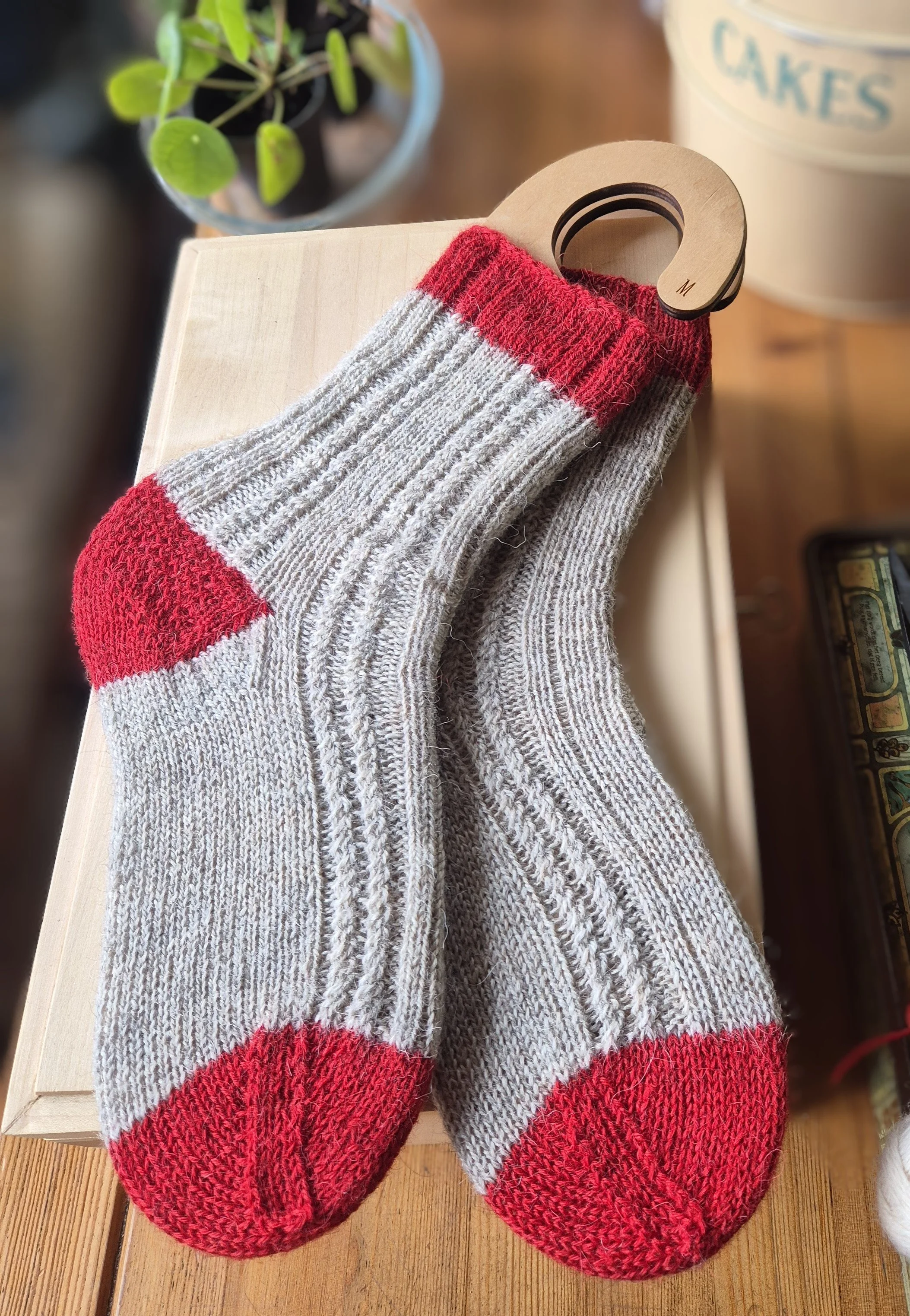 This pattern was designed to create a subtle cable-look sock, specifically for knitting on the go as the twisted rib can be knitted without using a cable needle.